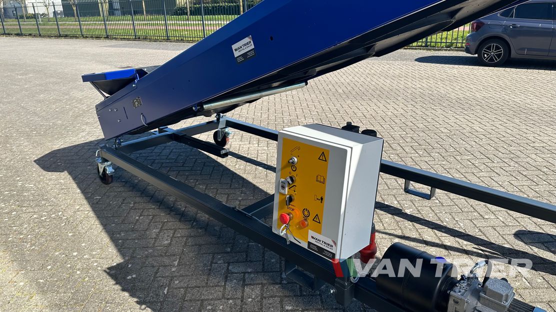Verbessern Sie Ihren Materialtransport mit dem Van Trier 8-100 Steigeband. Mit einer Länge von 8m und einer Gurtbreite von 100cm bietet dieses Förderband eine Kapazität von 200TPH und gewährleistet einen reibungslosen Transport von Schüttgütern wie Kartoffeln, Getreide und Kakaobohnen. Seine Elektrisch-hydraulisch Höhenverstellbarkeit erhöht die Vielseitigkeit, während seine robuste Konstruktion Langlebigkeit für schwere Anwendungen garantiert. Mit einer beeindruckenden Ausgabehöhe von 3,8m ist der Van Trier 8-100 Steigeband die erste Wahl für Branchen wie Agribulk, Umschlag, Landwirtschaft und Recycling. Investieren Sie noch heute in Effizienz und Zuverlässigkeit!
