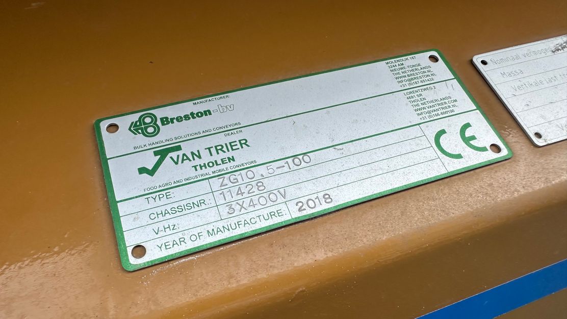 Discover the Breston ZG10-100L Conveyor belt, engineered to enhance material handling across diverse industries. With a length of 10,5m and a belt width of 100cm, this conveyor belt boasts a capacity of 160TPH, making it perfect for transporting bulk products efficiently. Equipped with Electric-hydraulic height adjustment for flexibility and durability to withstand heavy-duty operations, it's the ideal solution for businesses in agribulk, transshipment, agriculture, and recycling. With an impressive output height of 5,2m, the Breston ZG10-100L Conveyor belt delivers unparalleled performance. Elevate your material handling processes today!
