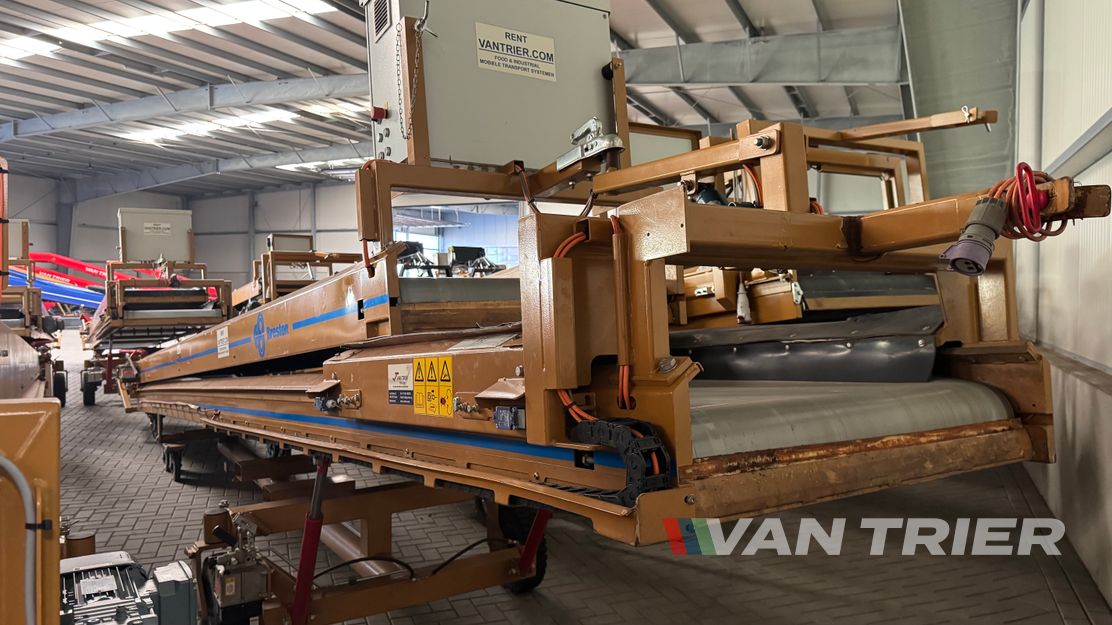 Explore the efficiency of the Breston 2x8-100 Dual belt conveyor, a reliable solution for agricultural material handling needs. With telescopic conveyor belts each 16m in length and 100cm in width, this conveyor offers a capacity of 18TPH. Its telescopic feature enables easy extension and retraction, allowing seamless loading and sorting of crops like potatoes, onions, carrots, and cocoa beans, ensuring optimal productivity in agricultural operations.